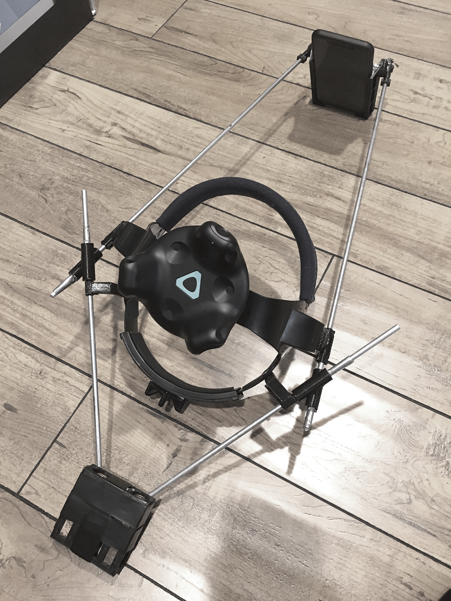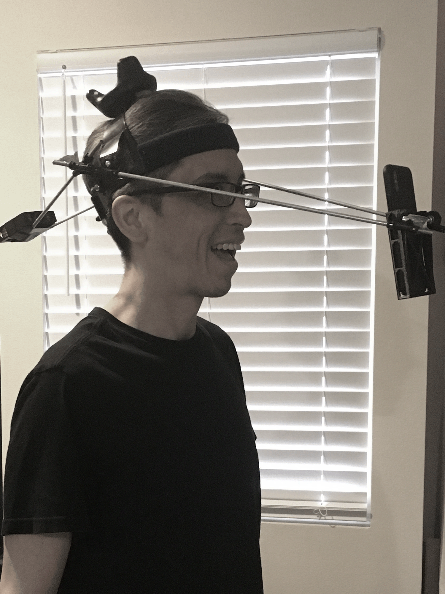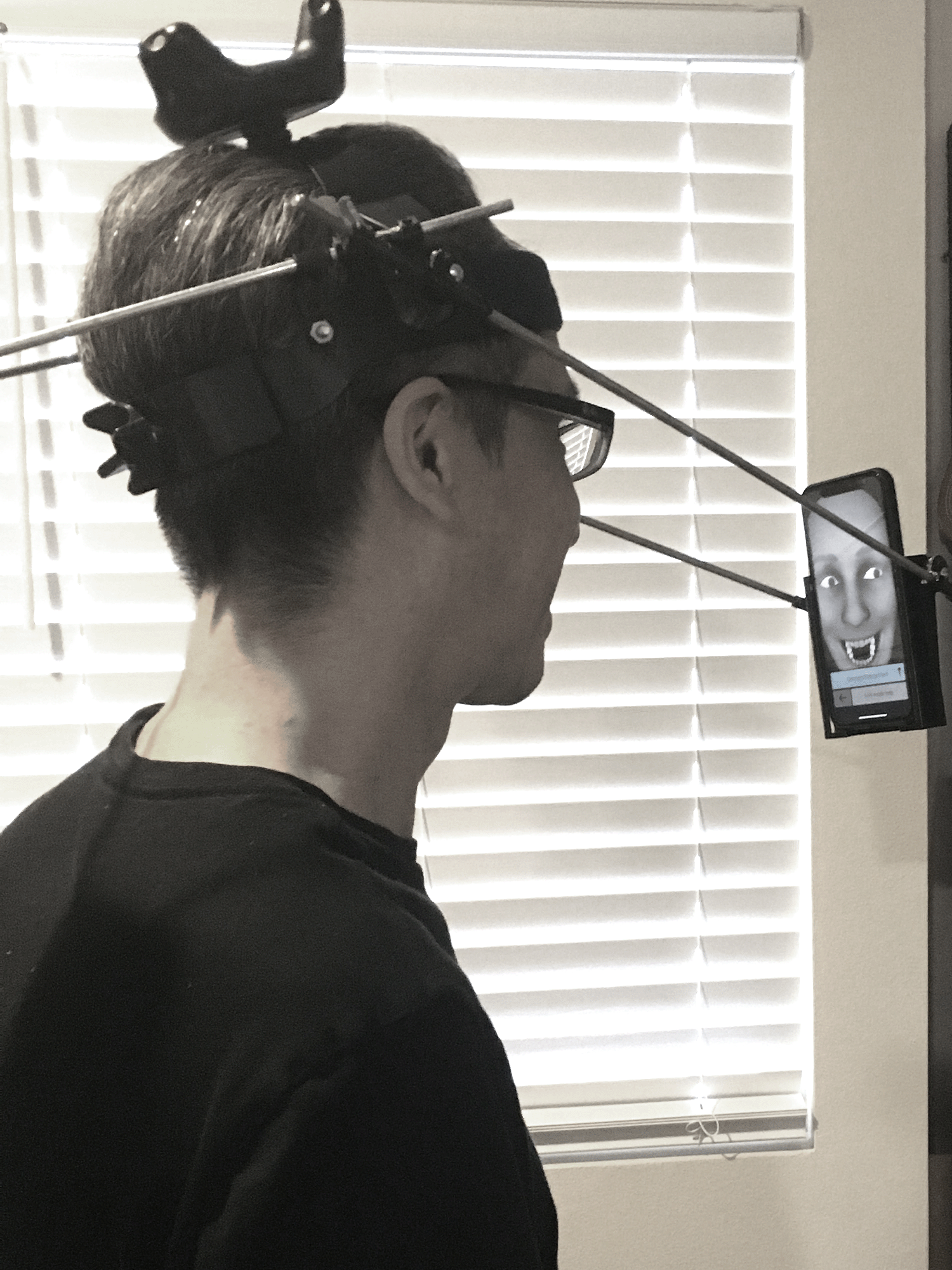 I also created my own headgear to hold the iPhone tracking our face while we move around and sing.